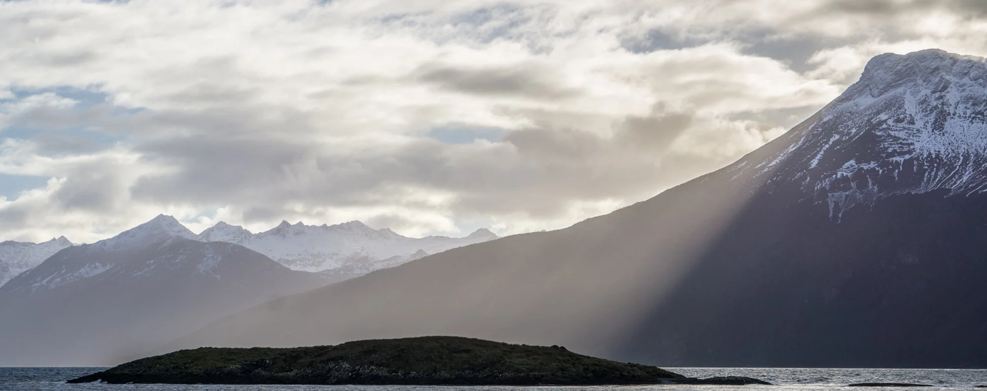 Our goal for the day was to reach the top of Pietro Grande, a 1600-foot hill located just inside the entrance of the park. The 7 km trail follows Selk'nam mask markers through the lichen-draped lenga forest before emerging onto a wide open summit plateau. From here you are treated to a 360-degree view of the Darwin Range one side, with the Rasmussen River snaking its way through the arid steppe to reach the Strait of Magellan on the other. It felt as though we were on the top of the world at the end of the world up there.
